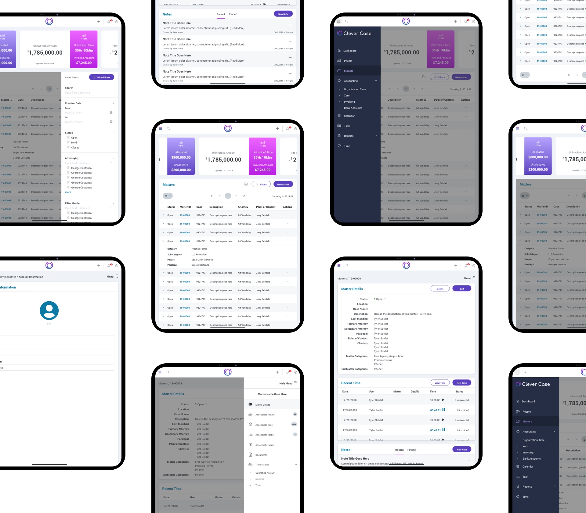 An ongoing process consisting of new and advance workflow processee's for law firms, process evaluating, and creating modern and unique interface designs.