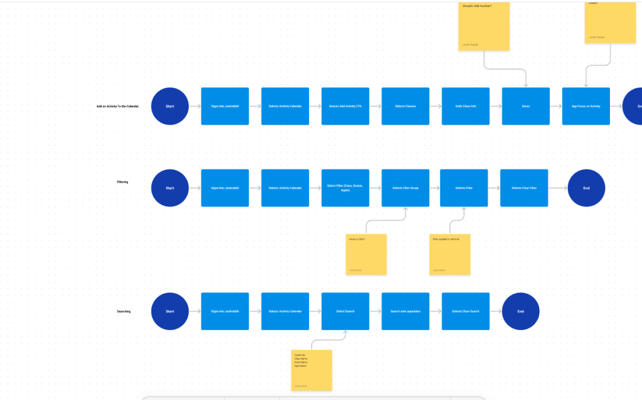 Depicting the sequence of steps a user takes to accomplish a specific task within the product, task flows are essential in the design and development process for any Jackrabbit digital product.
